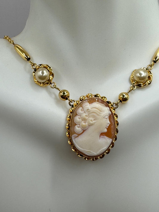 Vintage Shell Cameo Rose and Yellow Gold Filled Necklace Choker