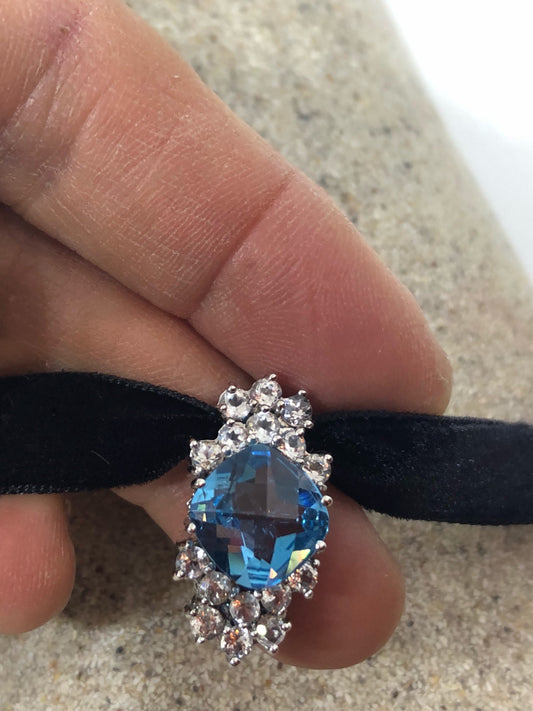 Vintage Blue Topaz Choker 925 Sterling Silver Necklace Pendant