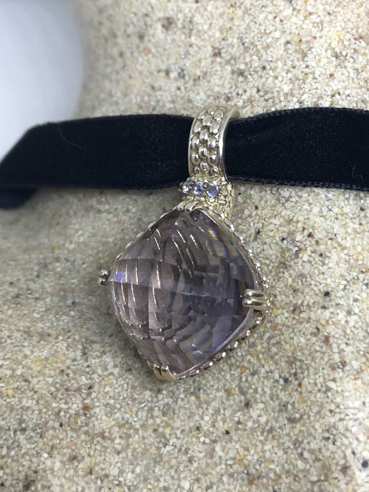 Vintage Rose Quartz Choker 925 Sterling Silver Pendant Necklace