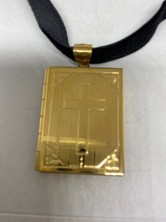 Vintage Cross Locket Choker Golden Stainless Steel Deco Etched Necklace