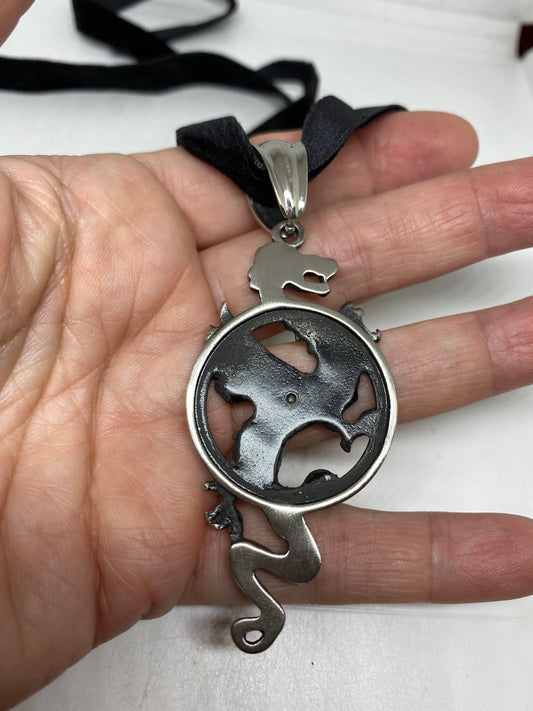 Vintage Silver Stainless Steel Gothic Celtic Dragon Pendant Necklace