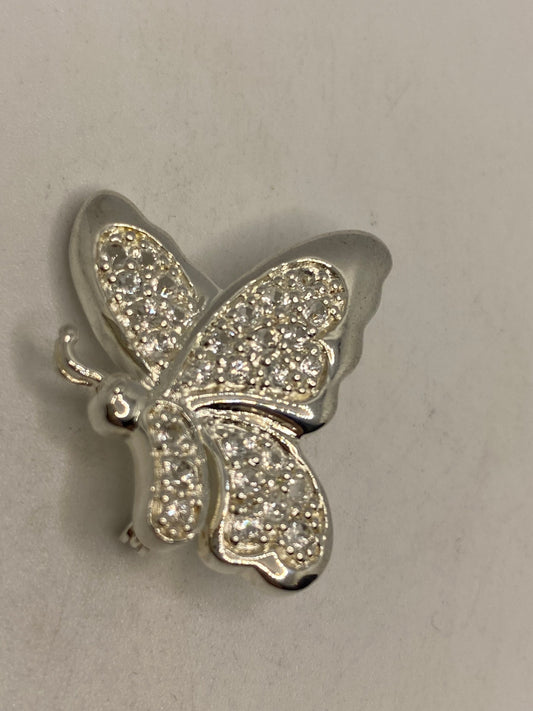 Vintage White Sapphire Pin 925 Sterling Silver Butterfly Brooch