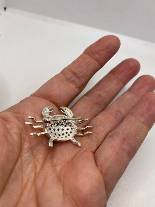 Vintage Blue Topaz Red Tourmaline Crab Cancer Pin 925 Sterling Silver Brooch