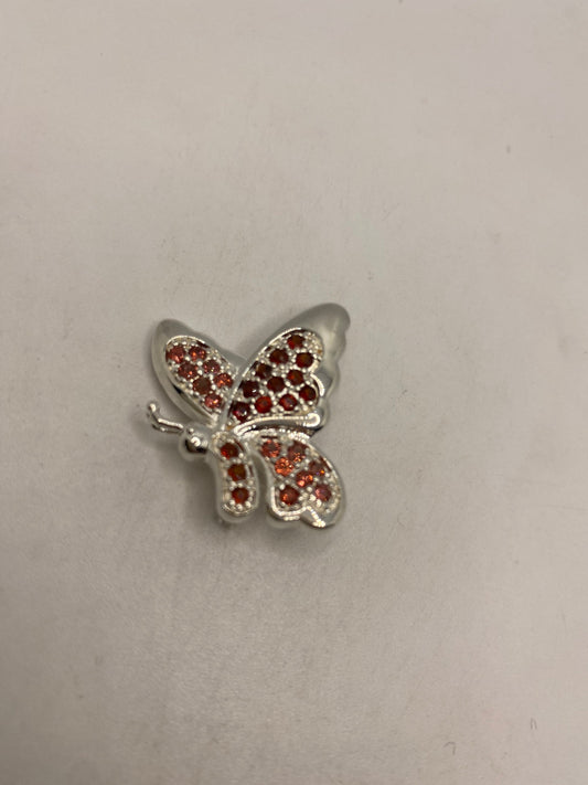 Vintage Red Garnet Pin 925 Sterling Silver Butterfly Brooch