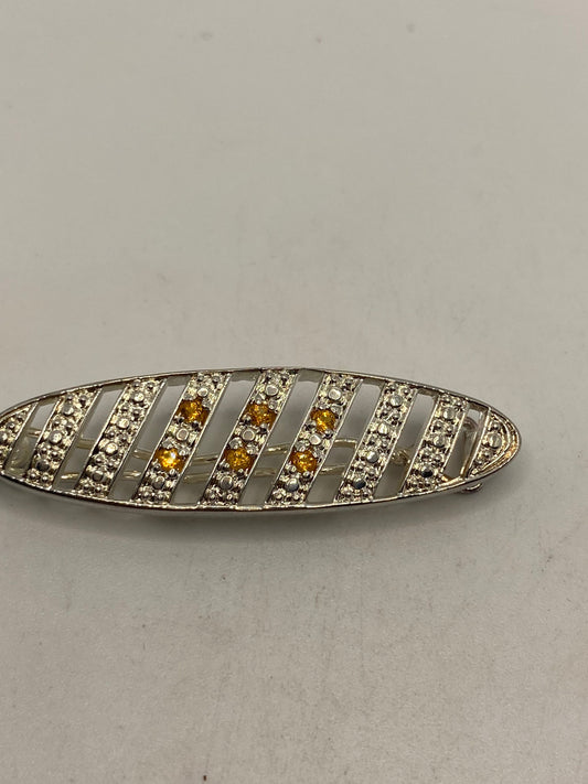 Vintage Citrine Bar Hair Pin 925 Sterling Silver Hair Brooch