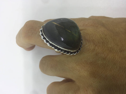 Vintage Large Blue Green Labradorite Stone Silver Ring