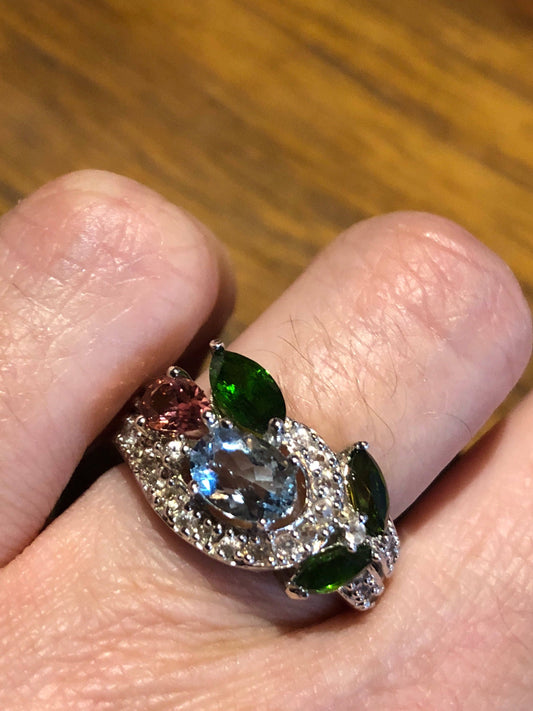 Vintage Amethyst Garnet Citrine Green Tourmaline 925 Sterling Silver Cocktail Ring