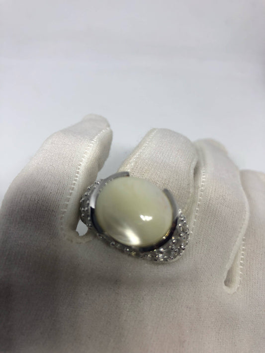 Antique White Mother of Pearl Filigree White Sapphire Sterling Silver Ring