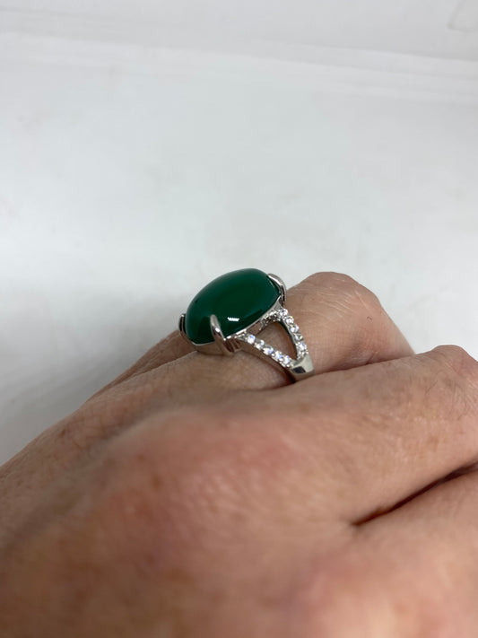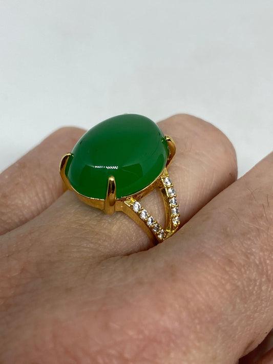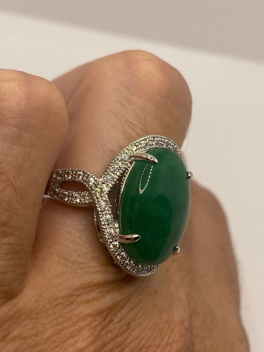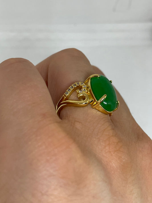 Vintage Lucky Green Nephrite Jade Cocktail Ring