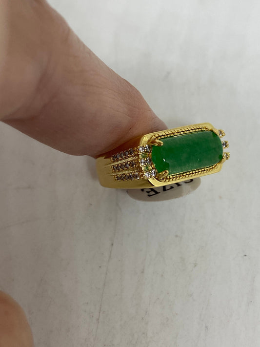 Vintage Lucky Green Nephrite Jade Golden Ring