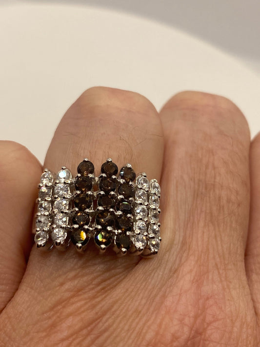 Vintage Smoky Topaz Setting 925 Sterling Silver Gothic Ring Size 5