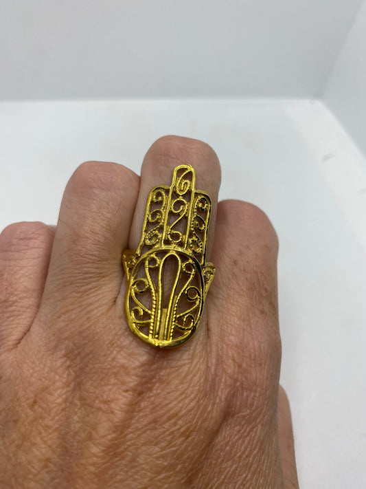 Vintage Yellow Turquoise Tribal Brass Antique Ring