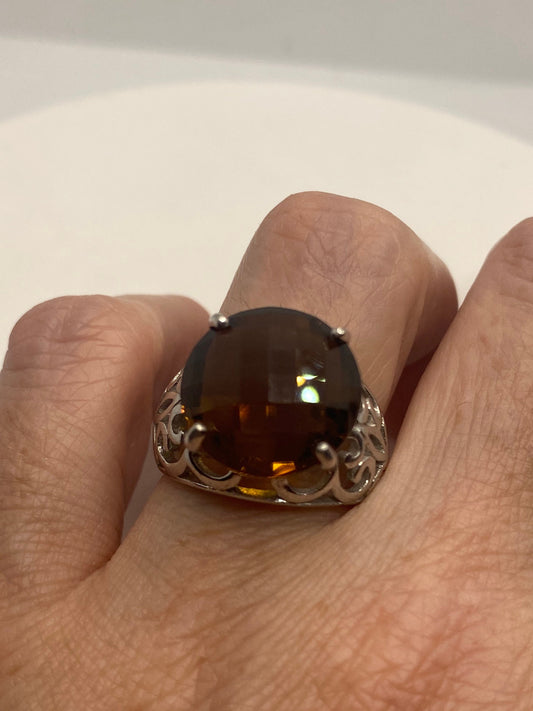Vintage Smoky Topaz 925 Sterling Silver Ring Size 7
