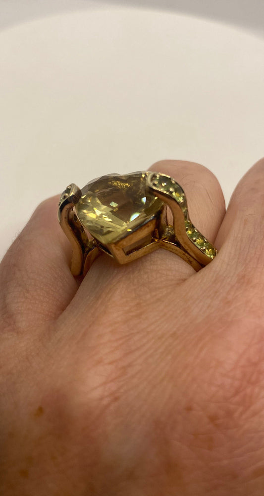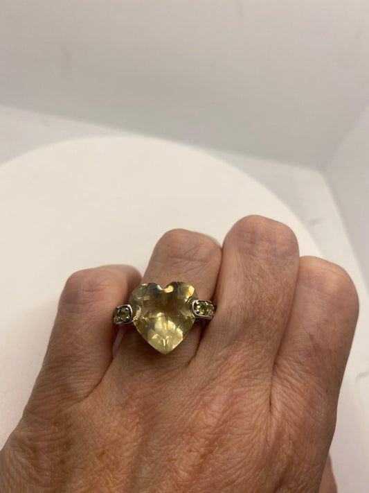 Vintage Smoky Topaz Heart Golden 925 Sterling Silver Ring Size 7