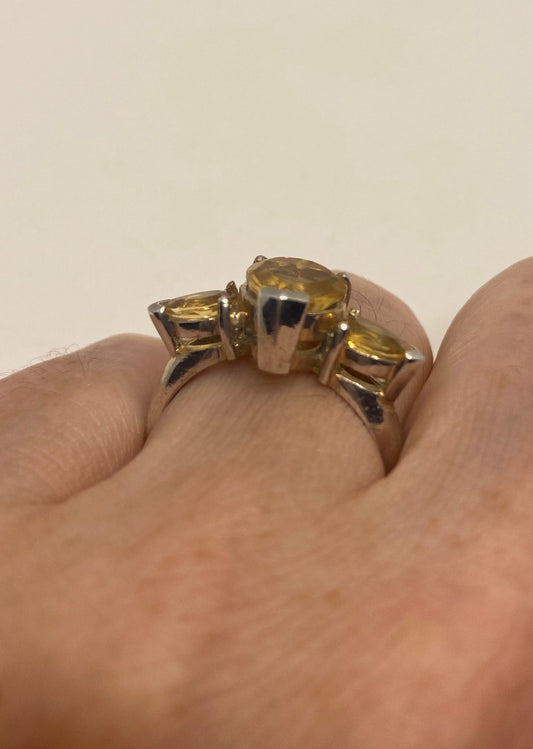 Vintage Citrine 925 Sterling Silver Gothic Ring Size 7