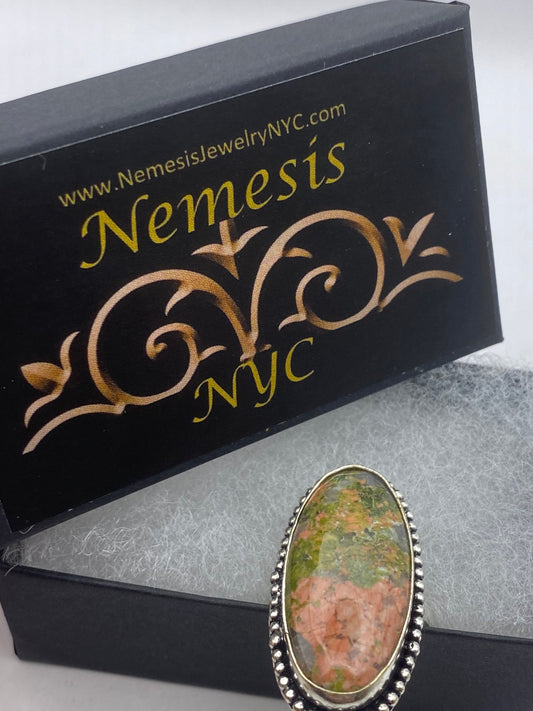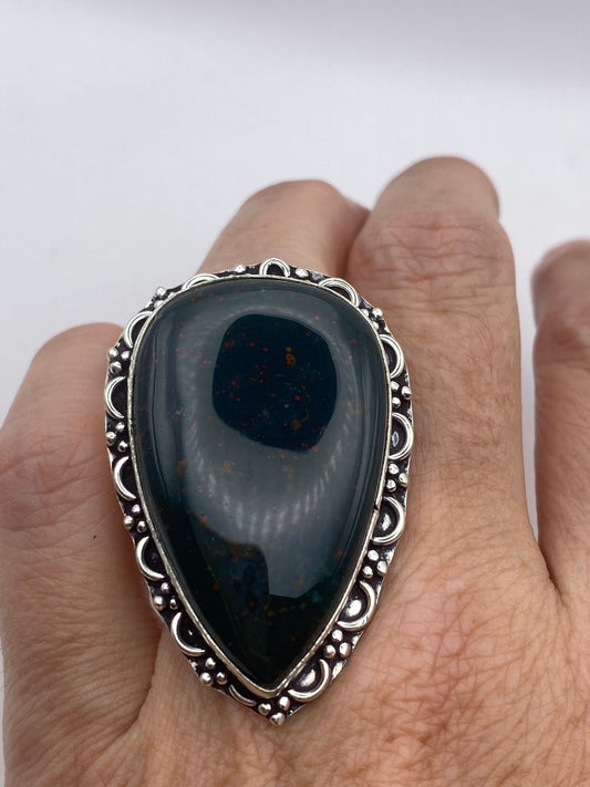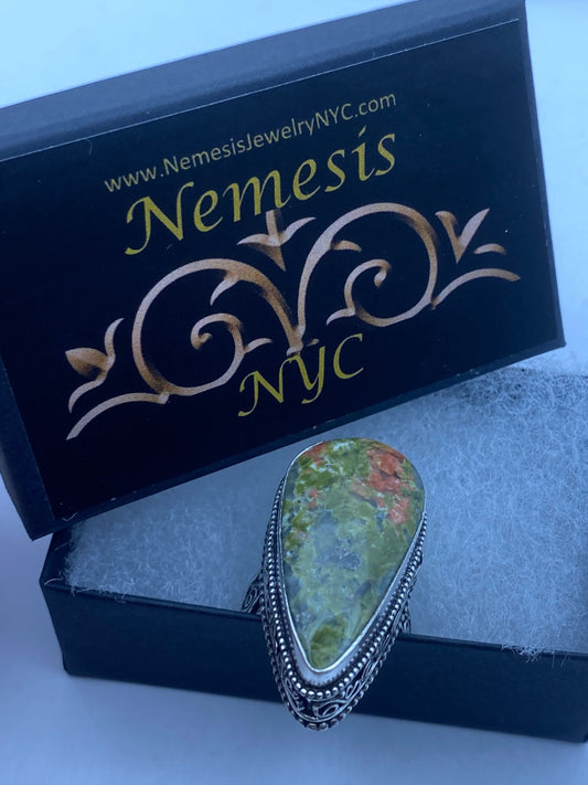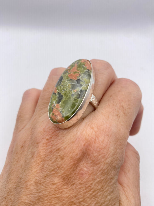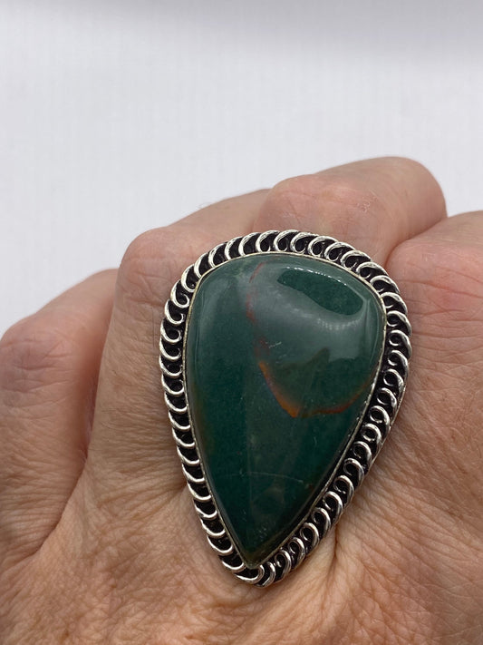 Vintage Green Unikcyte Silver Ring Size 7.5
