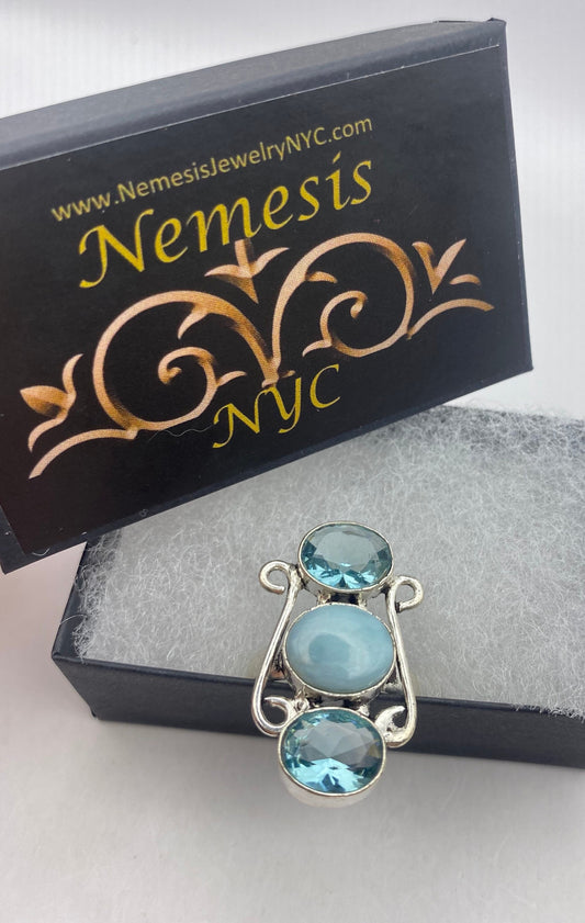 Vintage Blue Genuine Larimar Aqua Glass Ring Size 8