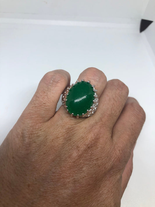 Vintage Handmade Genuine Green Chrome Diopside Setting 925 Sterling Silver Ring