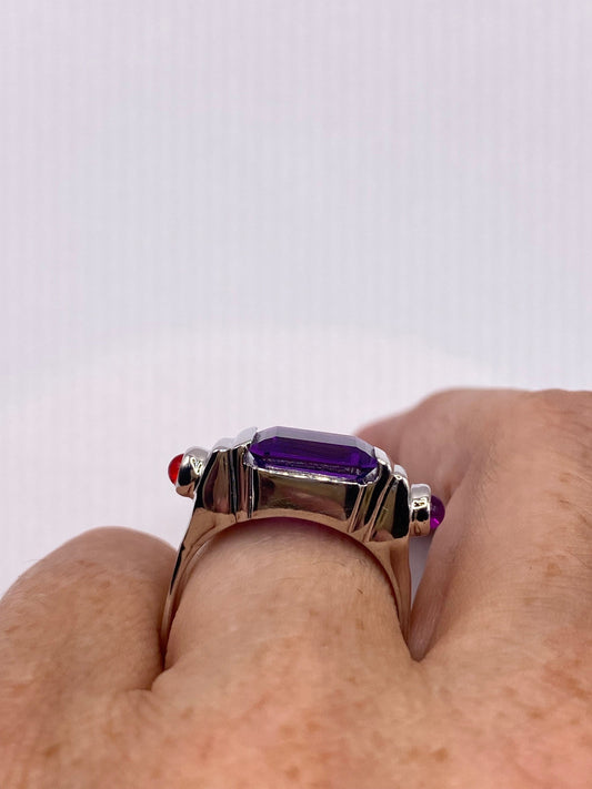 Vintage Handmade Genuine Purple Amethyst Filigree Setting 925 Sterling Silver Gothic Ring