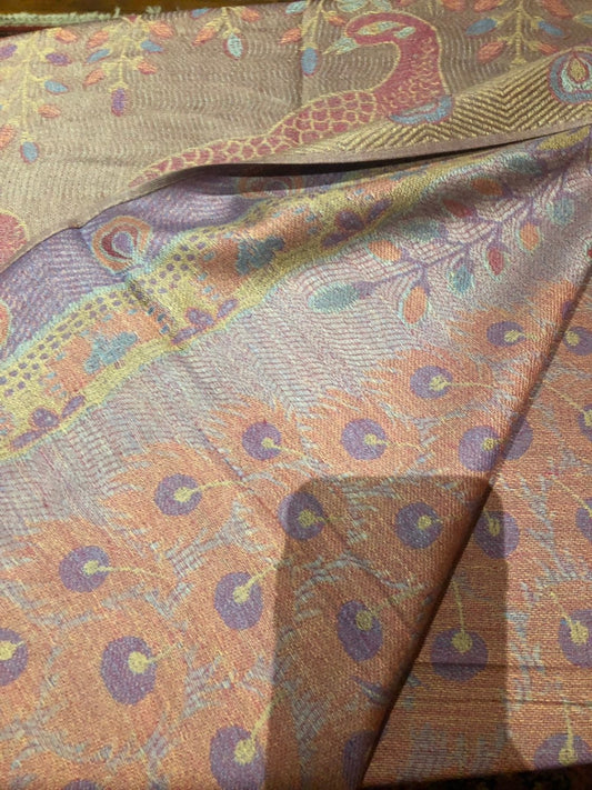 Vintage Peacock feather Brocade Pashmina Scarf Wrap Shawl