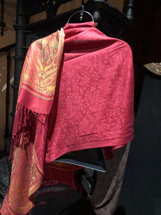 Red Vintage Paisley Brocade Pashmina Scarf Wrap Shawl