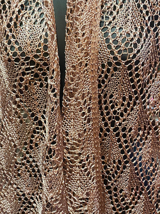 Vintage Coral Pink Lace crochet Shawl Wrap