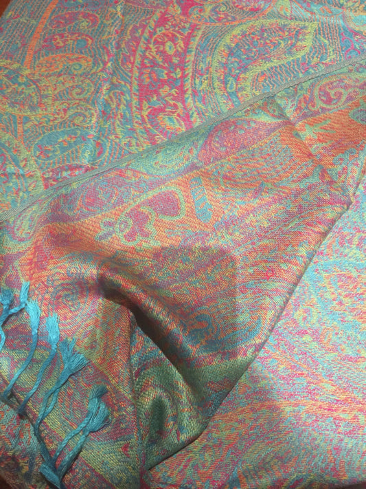 Turquoise Vintage Paisley Brocade Pashmina Scarf Wrap Shawl
