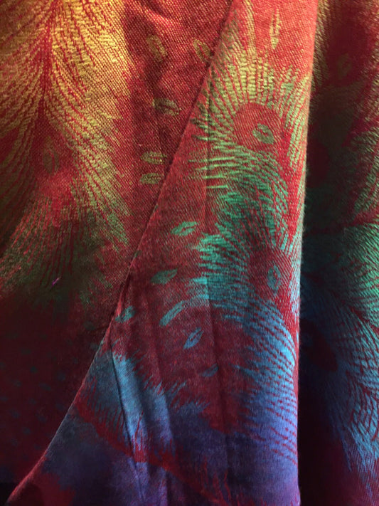 Vintage Rainbow Peacock feather Brocade Pashmina Scarf Wrap Shawl