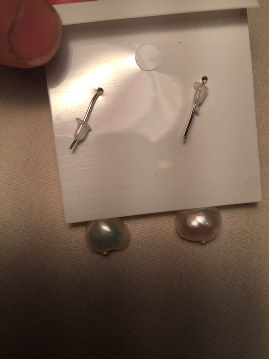 Vintage Genuine Pearl Sterling Silver Flower Dangle Earrings