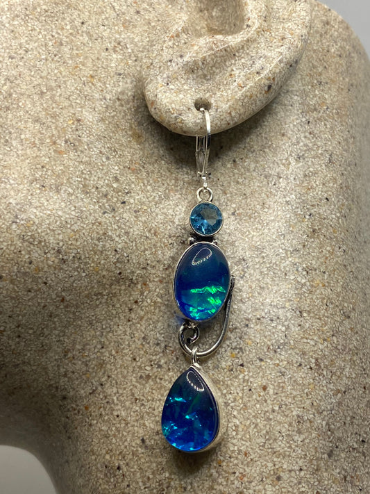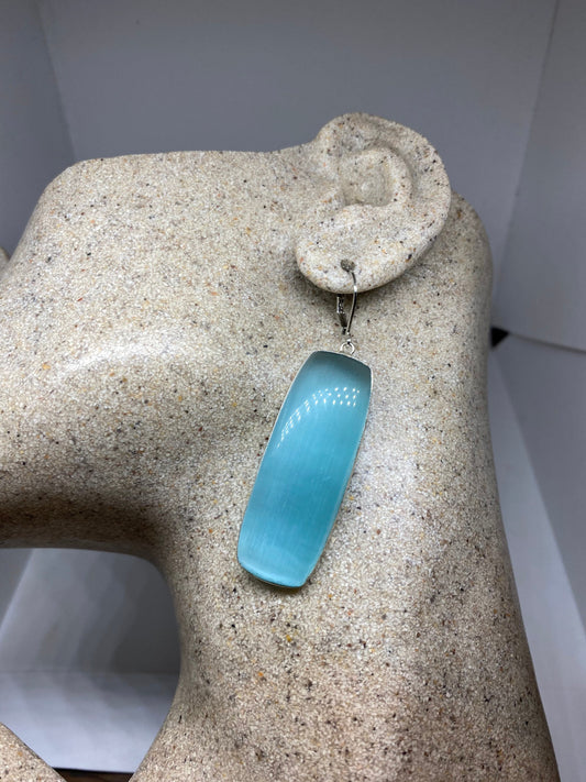 Vintage Sterling Silver Blue Iolite and lab Cats Eye Earrings