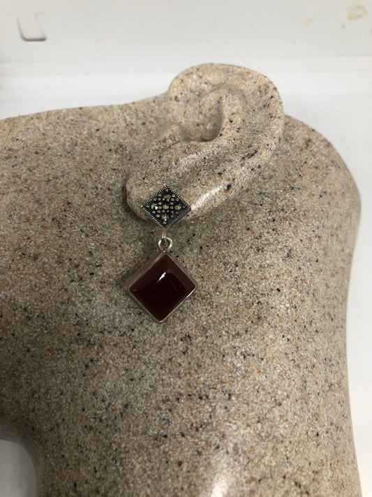 Vintage Genuine Marcasite 925 Sterling Silver Filligree Carnilian Dangle Earrings