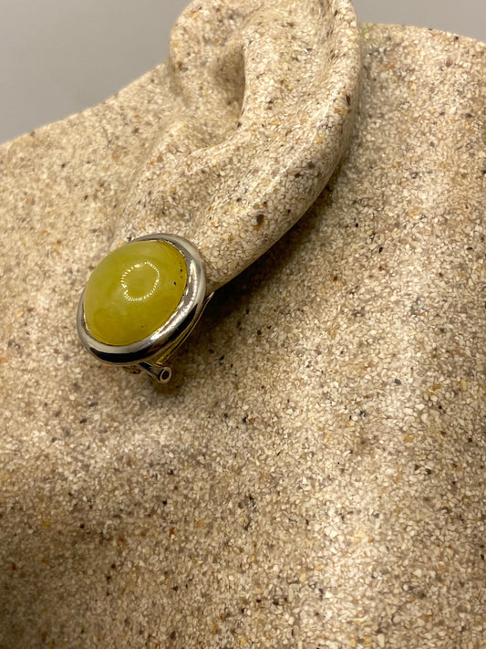 Vintage Genuine Yellow Yellow Jade and Citrine Gemstone Silver Earrings