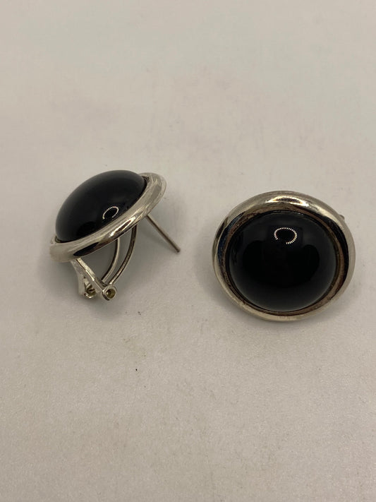 Vintage Black Onyx 925 Sterling Silver Button Earrings