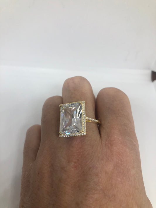 Vintage Cubic Zirconia Crystal Golden Sterling Silver Ring Size 8