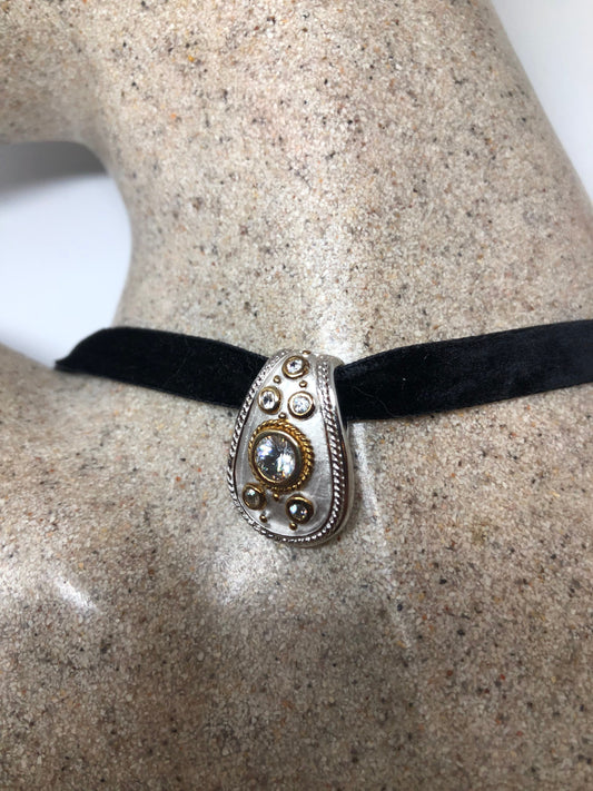 Vintage Cubic Zirconia Choker Gold 925 Sterling Silver Deco Pendant Necklace