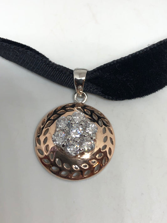 Vintage Cubic Zirconia Choker 925 Sterling Silver Deco Pendant Necklace