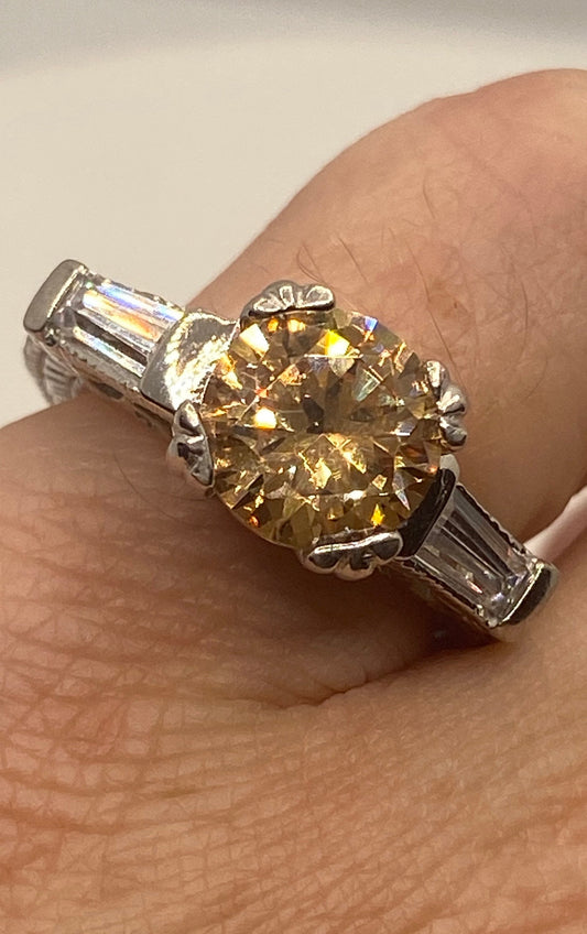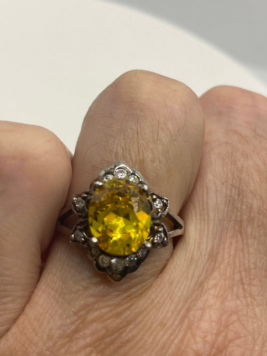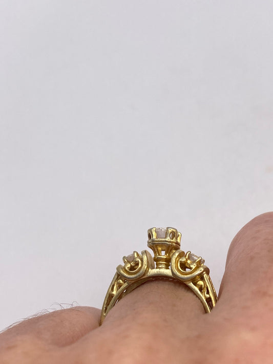Vintage Cubic Zirconia Crystal Golden Sterling Silver Ring Size 7