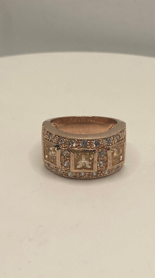 Vintage Cubic Zirconia Crystal Rose Golden 925 Sterling Silver Ring