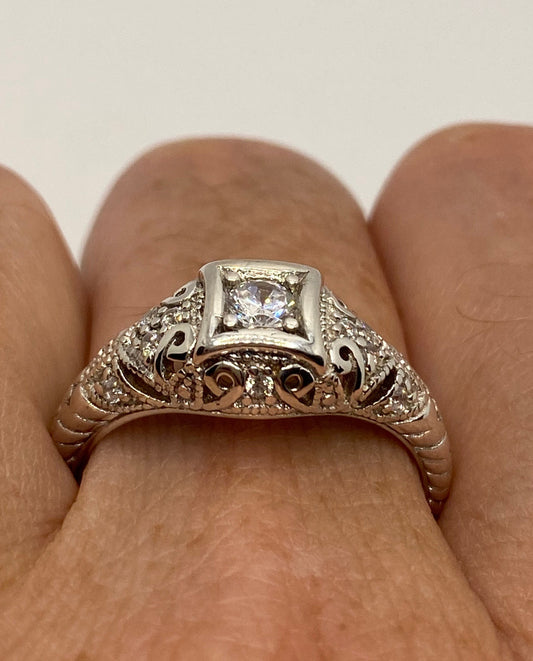 Vintage Cubic Zirconia Crystal Sterling Silver engagement Ring Size 5