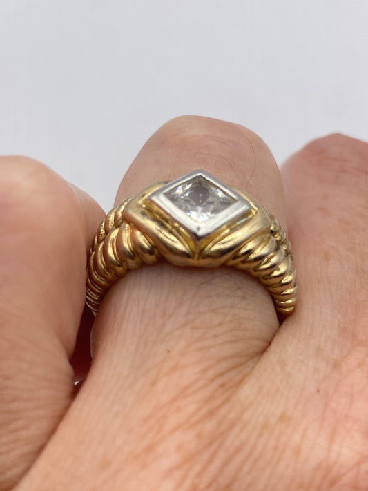 Vintage Cubic Zirconia Crystal Golden Sterling Silver Ring Size 9