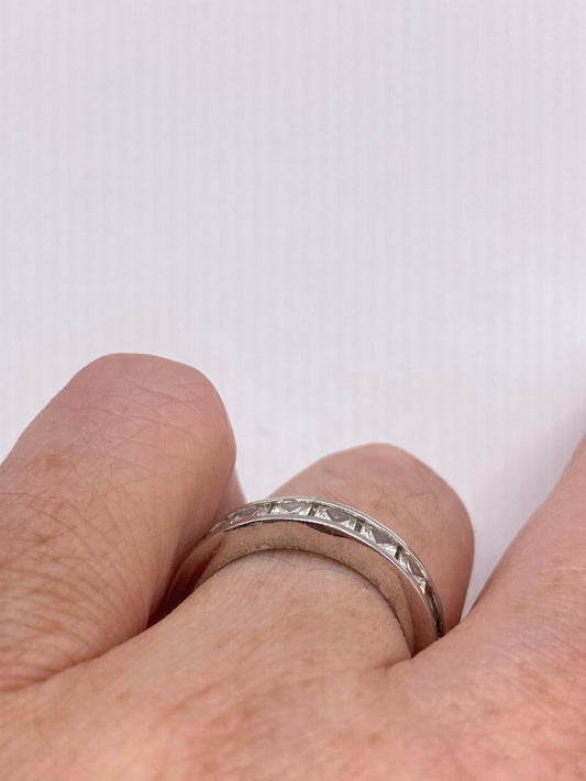 Vintage Cubic Zirconia Crystal Sterling Silver Eternity Band Ring