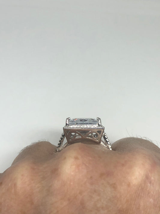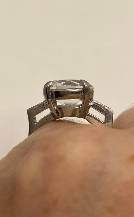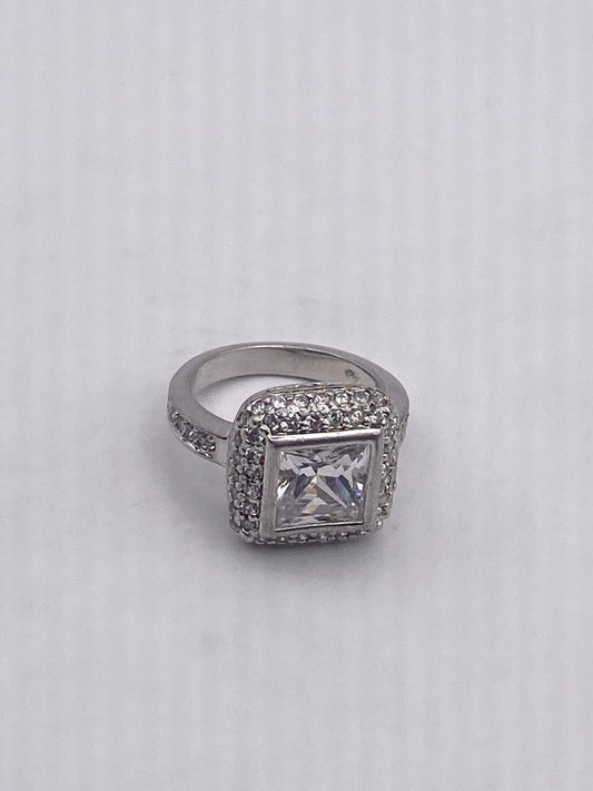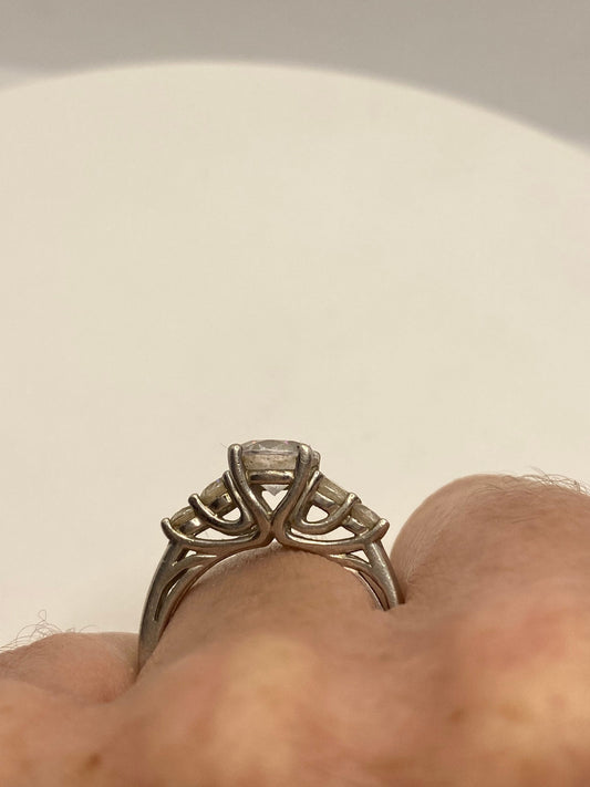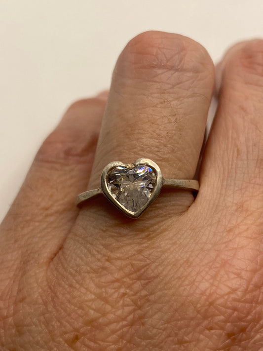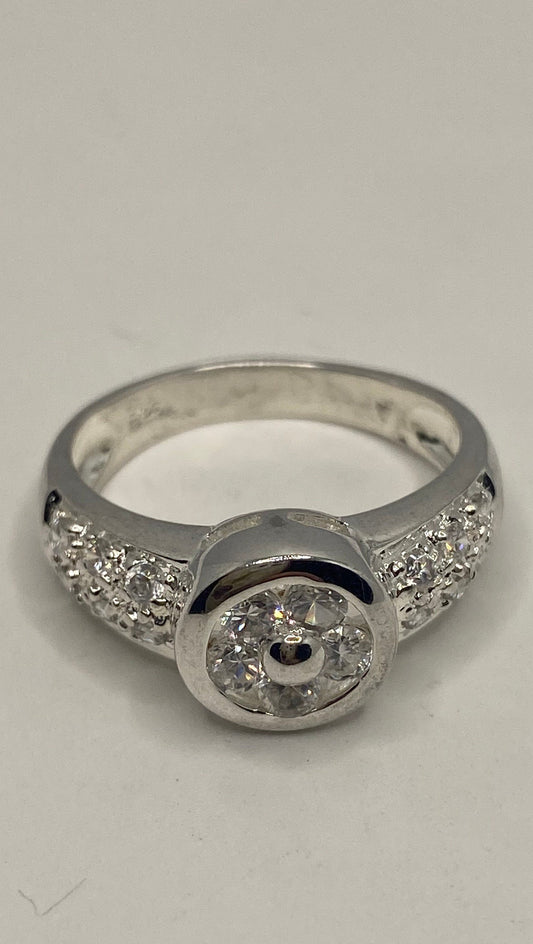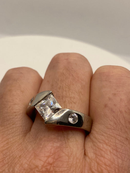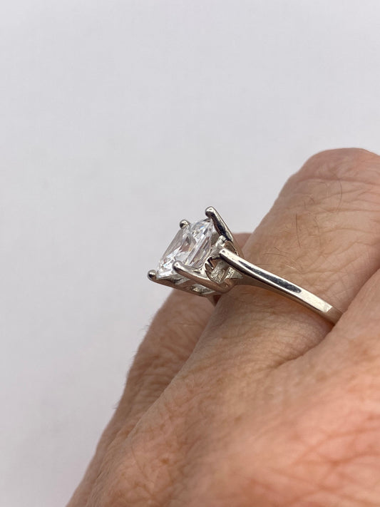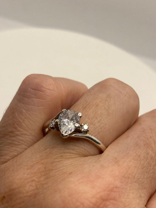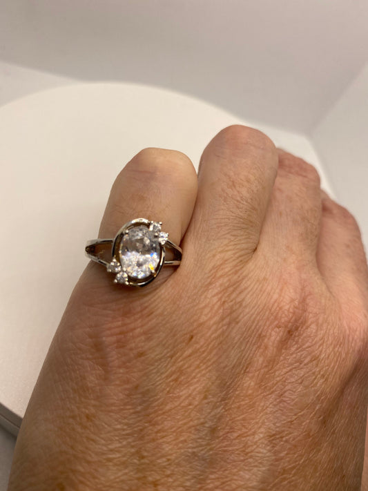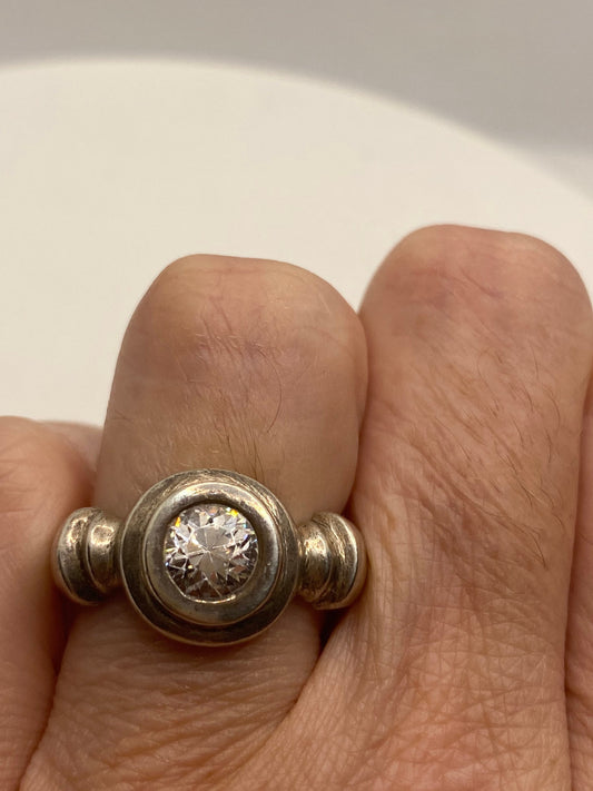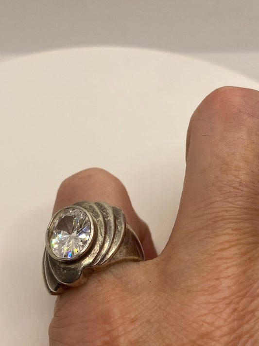 Vintage Cubic Zirconia Crystal Sterling Silver Ring Size 8