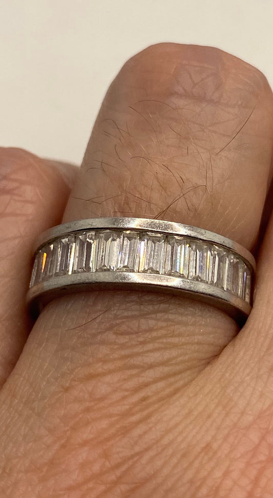 Vintage Cubic Zirconia Crystal Sterling Silver Eternity Ring