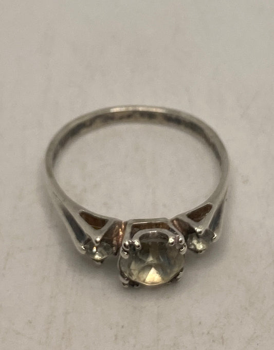 Vintage Cubic Zirconia Crystal Sterling Silver Ring Size 4.5