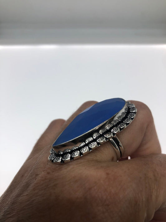 Vintage Genuine Blue Chalcedony an Inch Long Ring