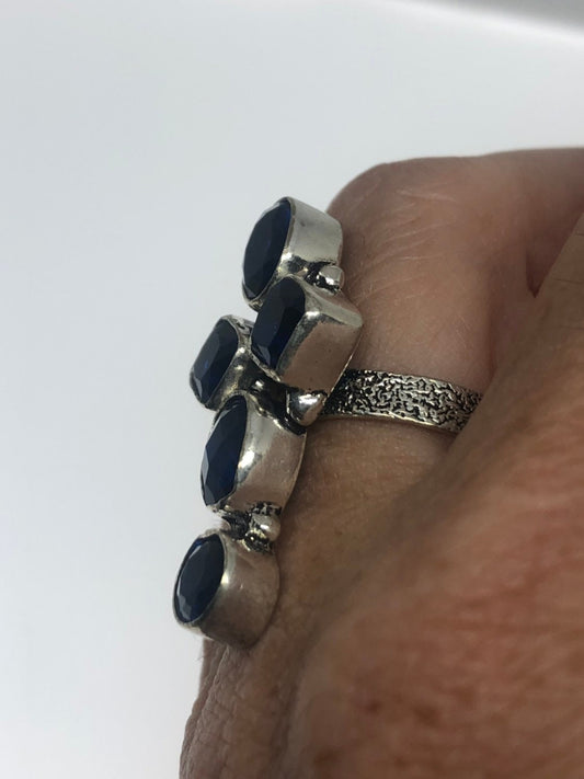 Vintage Genuine Blue Iolite Cross Silver Ring