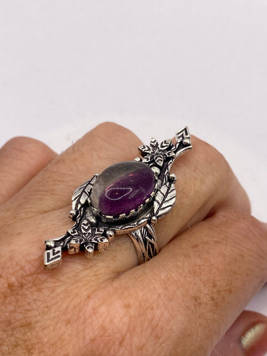 Vintage Genuine Purple Amethyst and Fluorite Ring