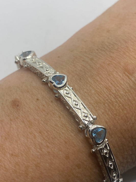 Handmade Genuine Blue Topaz Heart 925 Sterling Silver Tennis Bracelet