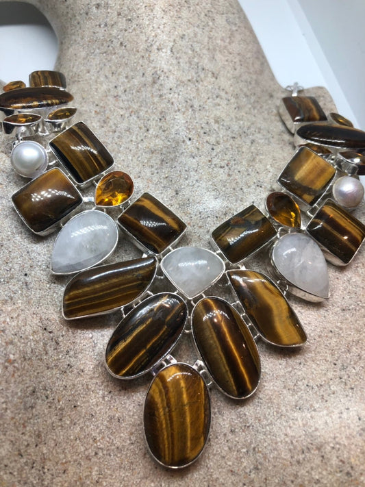 Handmade Turkish Ottoman Styled Silver tigers eye Pendant Necklace