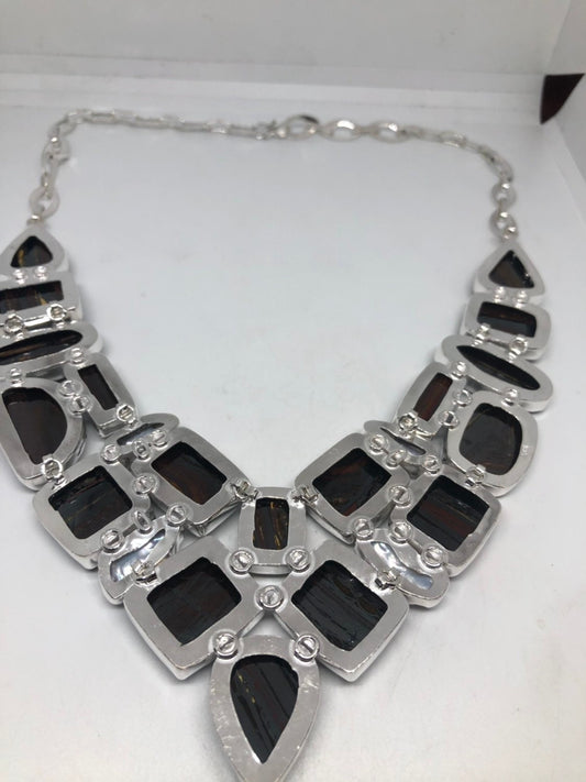 Handmade Turkish Ottoman Styled Silver hematite tigers eye Pendant Necklace